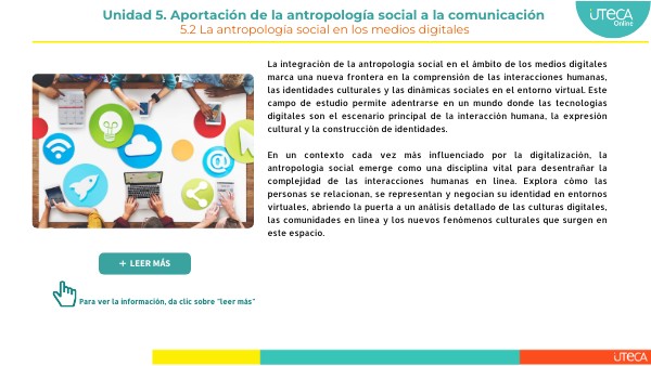 La integración de la antropología social en el ámbito de los medios digitales marca una nueva frontera en la comprensión de las interacciones humanas, las identidades culturales y las dinámicas sociales en el entorno virtual. Este campo de estudio permite adentrarse en un mundo donde las tecnologías digitales son el escenario principal de la interacción humana, la expresión cultural y la construcción de identidades. En un contexto cada vez más influenciado por la digitalización, la antropología social emerge como una disciplina vital para desentrañar la complejidad de las interacciones humanas en línea. Explora cómo las personas se relacionan, se representan y negocian su identidad en entornos virtuales, abriendo la puerta a un análisis detallado de las culturas digitales, las comunidades en línea y los nuevos fenómenos culturales que surgen en este espacio.