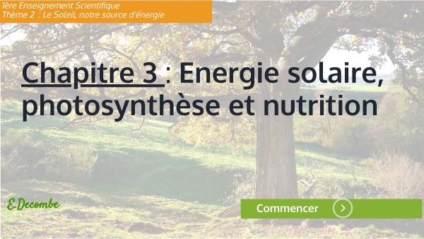 Chapitre 3 : Energie solaire, photosynthèse et nutrition