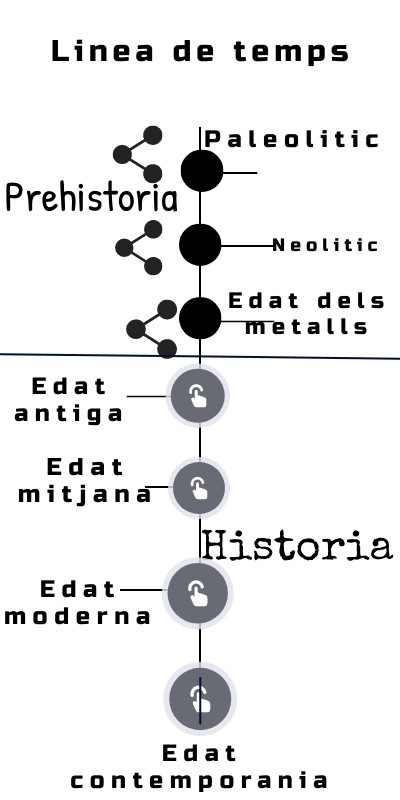 La prehistoria começa a l'any 2.500.000 a.C. que es quan comença el periode de la vida humana i acaba a l'any 3000 a.C. que es quan começa l'invencio de la escriptura. La prehistoria te tres etapes el paleolitic, el neolitic i l'edat dels metalls.