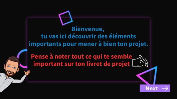 Bienvenue, tu vas ici découvrir des éléments importants pour mener à bien ton projet.