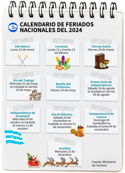 CALENDARIO DE FERIADOS NACIONALES DEL 2024