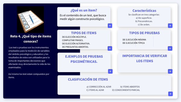 Es el contenido de un test, que busca medir algún constructo psicológico.