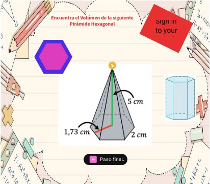 El objetivo de la imagen que que el alumno de manera autónoma aprenda a obtener el volumen de una pirámide de base exagonal.