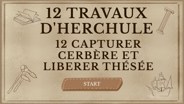 Le dernier des douze travaux d’Hercule est de capturer Cerbère, le chien à trois têtes, gardien de l’entrée des enfers. Chien d’Hadès, le dieu des morts et le souverain des enfers. Ansi que de liberer thésés