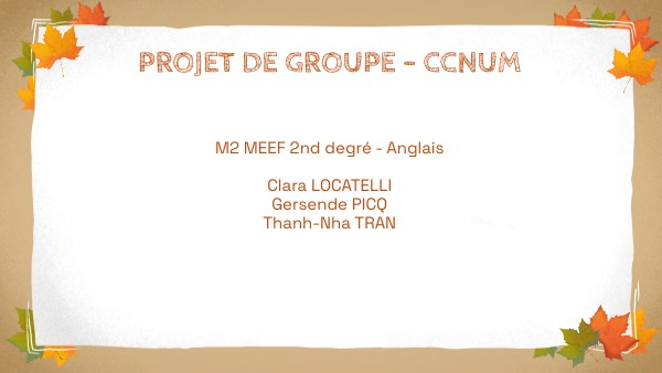 M2 MEEF 2nd degré - Anglais Clara LOCATELLI Gersende PICQ Thanh-Nha TRAN