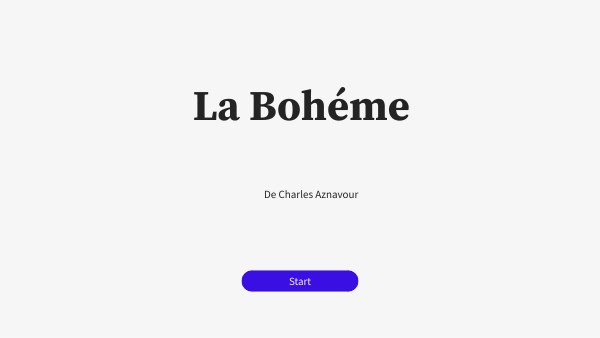 Définition : - Vivre avec peu de moyens en marge de la société et vivre au jour le jour en exprimant ses idées notamment par l'art Chanson (1965) époque où : Montmartre lieu pour vivre de l'art, jeune artiste cherchent --> succées Pauvreté = "Moi qui criait famine" Vivre de l'art = " Contre un bon repas chaud nous prenait une toile" Vivre au jour le jour = " Et nous vivions de l'air du temps" Heureux avec cette vie = "il voulait dire on est heureux" Nostalgie car fin de la chansons --> Nostalgie (jeunesse et de cette vie ) " La Bohème ça ne veut plus rien dire du tout"