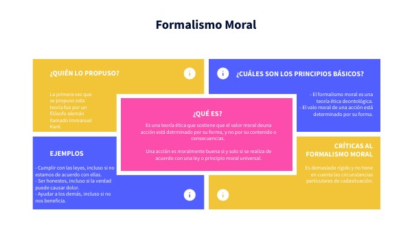 - El formalismo moral es una teoría ética deontológica.- El valo moral de una acción está determinado por su forma.