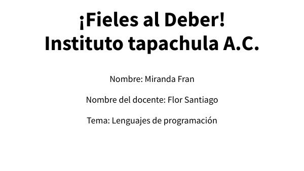 Nombre: Miranda Fran Nombre del docente: Flor Santiago Tema: Lenguajes de programación