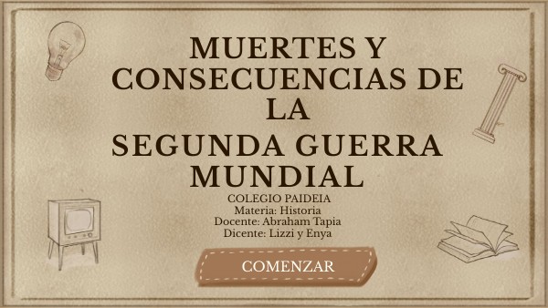 En la Segunda Guerra Mundial muchas personas murieros a causa de los campos de concentración, torturas, campo de guerra, pobreza,etc. Tambien hubo nuevas tecnologias en aras de combate como la bomba nuclear.