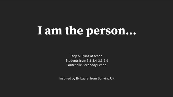 Stop bullying at school Students from 3.3 3.4 3.6 3.9 Fontenelle Seconday School Inspired by By Laura, from Bullying UK
