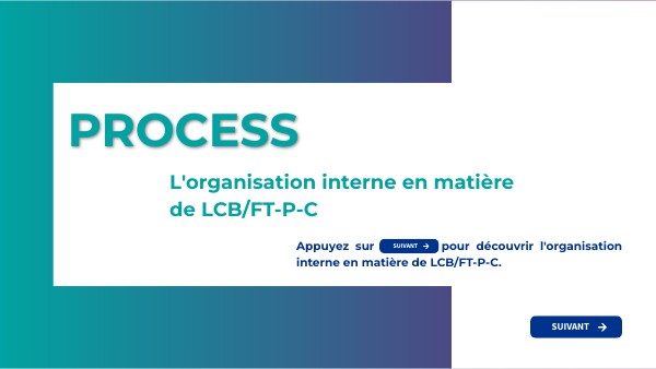 Appuyez sur "suivant" pour découvrir l'organisation interne en matière de LCB/FT-P-C.