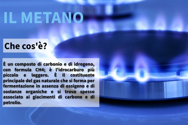 È un composto di carbonio e di idrogeno, con formula CH4; è l'idrocarburo più piccolo e leggero. È il costituente principale del gas naturale che si forma per fermentazione in assenza di ossigeno e di sostanze organiche e si trova spesso associato ai giacimenti di carbone e di petrolio.