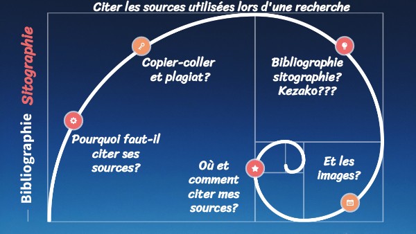 - Sitographie : c'est la liste des sites internets, ressources numériques utilisées pour faire votre recherche, y compris celles sur lesquelles vous avez juste pris une image!