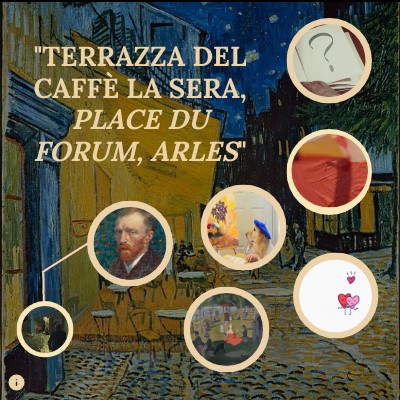 AUTORE: Vincent van Gogh TITOLO: "Terrazza del caffè la sera, Place du Forum, Arles" DATAZIONE: 1888 DIMENSIONI: 81×65,5 cm TECNICA: olio su tela COLLOCAZIONE: Museo Kröller-Müller, Otterlo