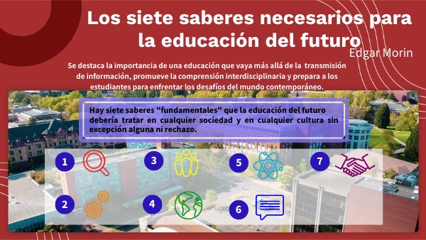 Hay siete saberes "fundamentales" que la educación del futuro debería tratar en cualquier sociedad y en cualquier cultura sin excepción alguna ni rechazo.
