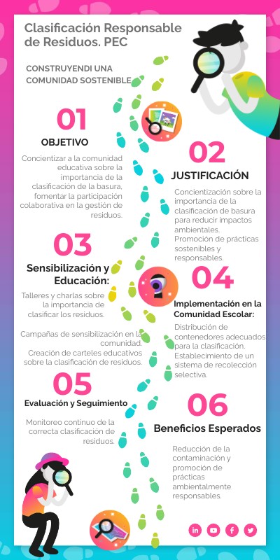 Concientización sobre la importancia de la clasificación de basura para reducir impactos ambientales. Promoción de prácticas sostenibles y responsables.