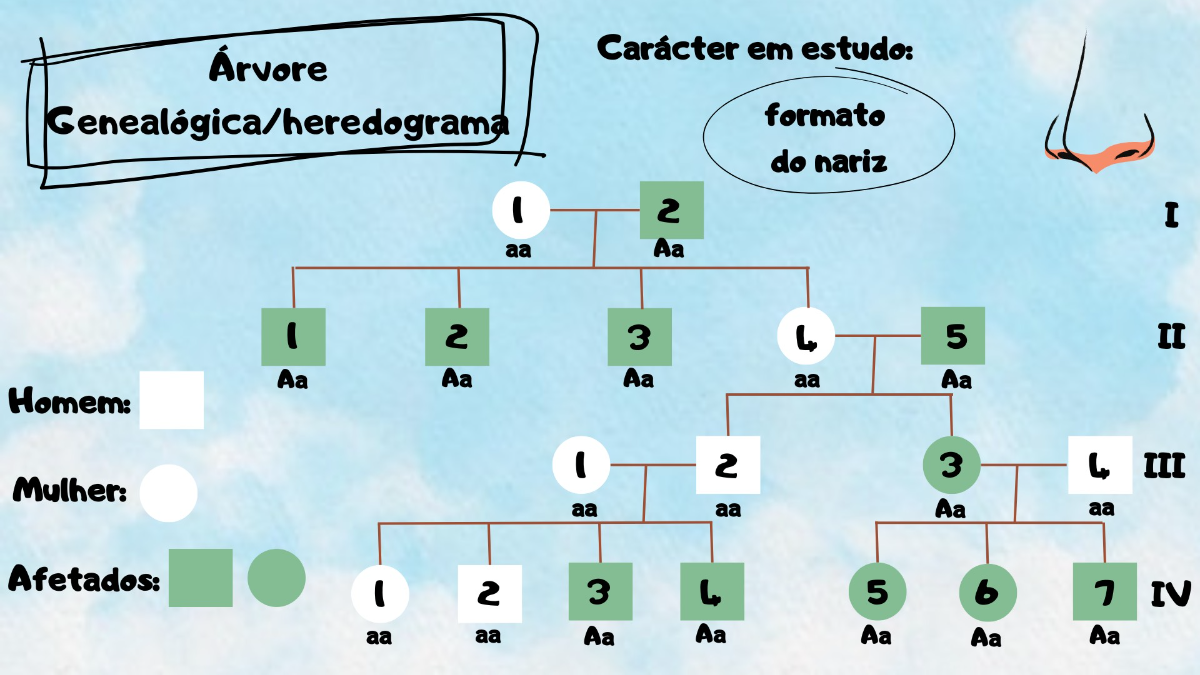 Na minha árvore genealógica/heredograma o tipo do formato do nariz é o negróide.