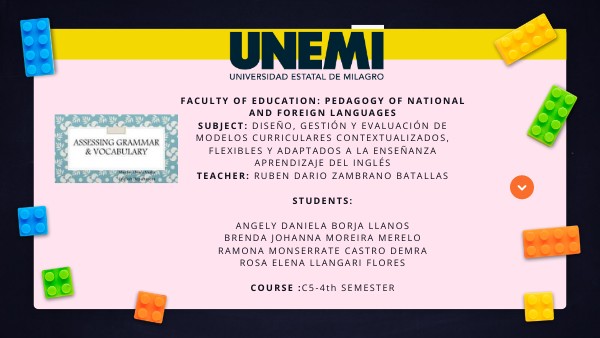 FACULTY OF EDUCATION: PEDAGOGY OF NATIONAL AND FOREIGN LANGUAGESSUBJECT: DISEÑO, GESTIÓN Y EVALUACIÓN DE MODELOS CURRICULARES CONTEXTUALIZADOS, FLEXIBLES Y ADAPTADOS A LA ENSEÑANZA APRENDIZAJE DEL INGLÉS TEACHER: RUBEN DARIO ZAMBRANO BATALLAS STUDENTS: ANGELY DANIELA BORJA LLANOS BRENDA JOHANNA MOREIRA MERELO RAMONA MONSERRATE CASTRO DEMRA ROSA ELENA LLANGARI FLORES COURSE :C5-4th SEMESTER