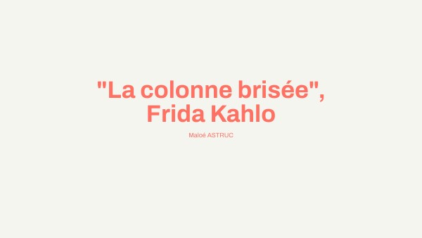‘CONCLUSION Frida Kahlo s' exprime à travers son œuvre de manière très personnelle et introspective, utilisant la peinture comme un moyen de canaliser ses émotions, ses douleurs physiques et émotionnelles, ainsi que son identité complexe. "La colonne brisée" est l'une de ses peintures les plus emblématiques qui reflète son moi intérieur et ses luttes personnelles. Ainsi, "La colonne brisée" exprime le moi de Frida Kahlo de manière multidimensionnelle, en mettant en lumière ses douleurs physiques, ses émotions profondes, et en utilisant des symboles culturels pour enrichir la signification de son œuvre. C'est un exemple poignant de la manière dont l'art peut servir de véhicule pour exprimer et surmonter les défis personnels. ’