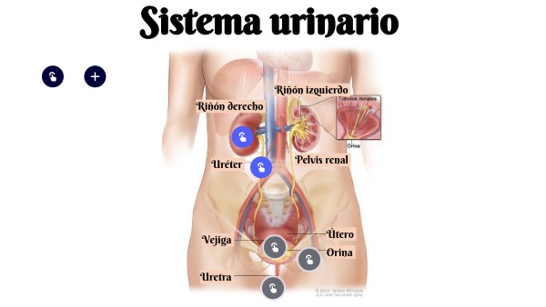 El sistema urinario está compuesto por los riñones, los uréteres, la vejiga urinaria y la uretra, los cuales filtran la sangre y posteriormente producen, transportan, almacenan y excretan orina (desechos líquidos) de forma intermitente.Al eliminar líquidos y desechos, el sistema urinario regula importantes parámetros fisiológicos; tales como el volumen sanguíneo (y consecuentemente la presión arterial), el pH de la sangre regulando ácidos y bases, y el equilibrio electrolítico mediante sofisticados mecanismos de reabsorción y excreción que dependen de las necesidades del cuerpo.