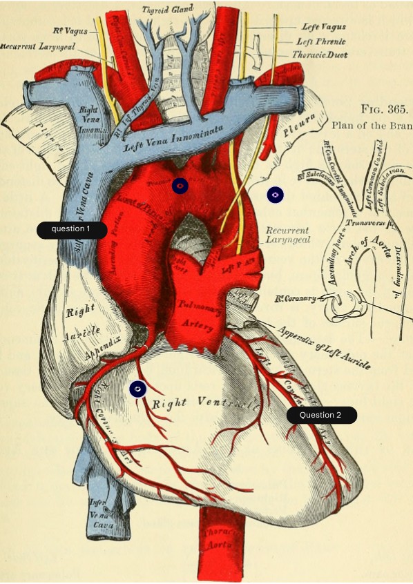 - le quatrième arc branchial: arc aortique droit, sixième arc branchial: arc aortique gauche
