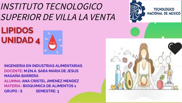 INGENIERIA EN INDUSTRIAS ALIMENTARIASDOCENTE: M.EN.A. SARA MARIA DE JESUS MAGAÑA BARRERA ALUMNA: ANA CRISTEL JIMENEZ MENDEZ MATERIA : BIOQUIMICA DE ALIMENTOS 1 GRUPO : S SEMESTRE: 3
