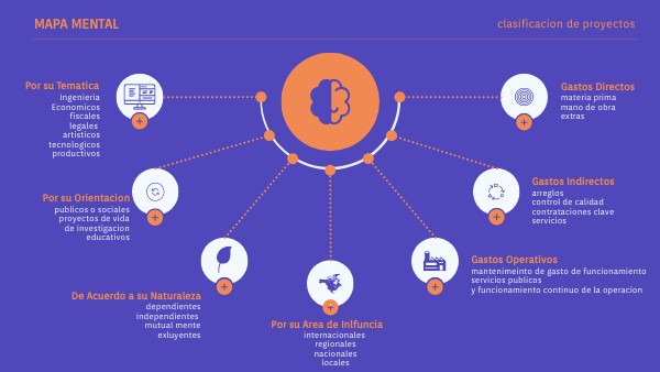 mapa mental para entender la clasificación de proyectos y sus subclasificaciones así como los costos involucrados