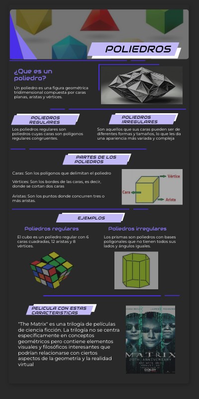Un poliedro es una figura geométrica tridimensional compuesta por caras planas, aristas y vértices.