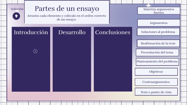 Arrastra cada elemento y colócalo en el orden correcto de un ensayo.