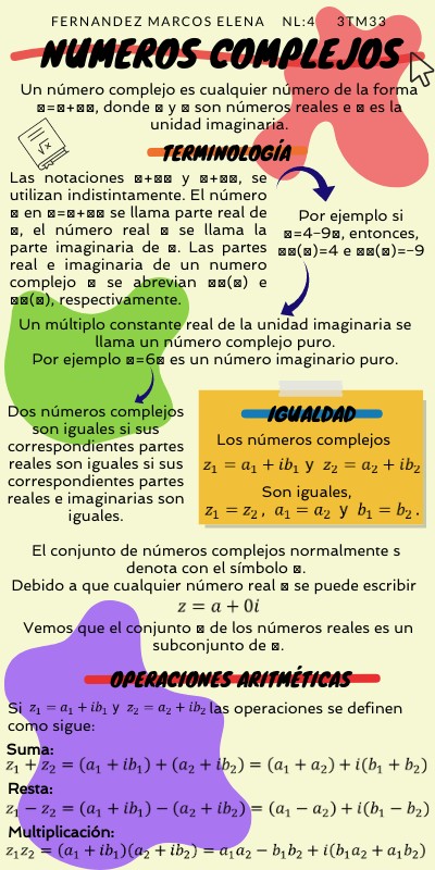 Un número complejo es cualquier número de la forma 𝑧=𝑎+𝑖𝑏, donde 𝑎 y 𝑏 son números reales e 𝑖 es la unidad imaginaria.