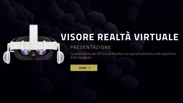 Caratteristiche del VR (Virtual Reality) con approfondimento sulle specifiche lenti impiegate.