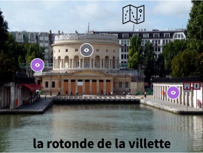 "la rotonde de la villette"is located in the 19th district of Paris,bored to the "bassin de la villette". It is not a touristical district but it's a residential area.
