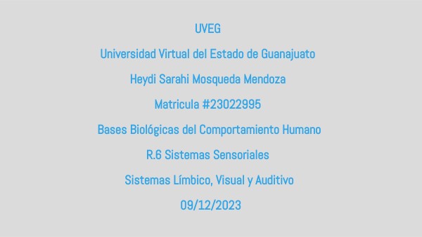 UVEG Universidad Virtual del Estado de Guanajuato Heydi Sarahi Mosqueda Mendoza Matricula #23022995 Bases Biológicas del Comportamiento Humano R.6 Sistemas Sensoriales Sistemas Límbico, Visual y Auditivo 09/12/2023