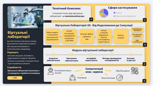Віртуальні лабораторії дозволяють моделювати реальні лабораторні установки та експерименти в 3D середовищі.