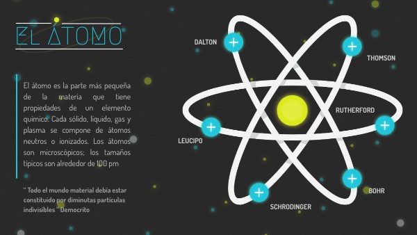 El átomo es la parte más pequeña de la materia que tiene propiedades de un elemento químico. Cada sólido, líquido, gas y plasma se compone de átomos neutros o ionizados. Los átomos son microscópicos; los tamaños típicos son alrededor de 100 pm