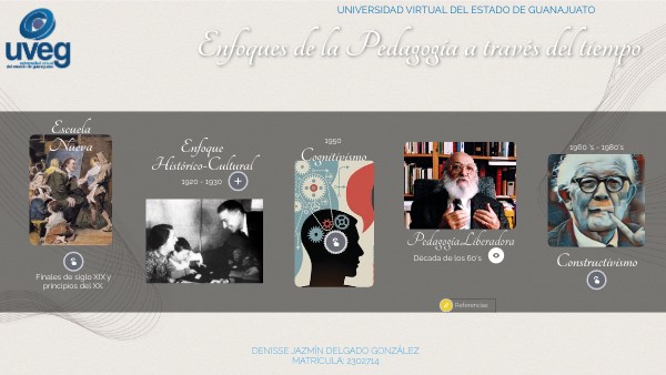 Descripción del Enfoque de la Nueva Escuela, Enfoque Histórico Cultural, Cognocitivismo, Pedagogía Liberadora y Constructivismo y algunos de sus exponentes.