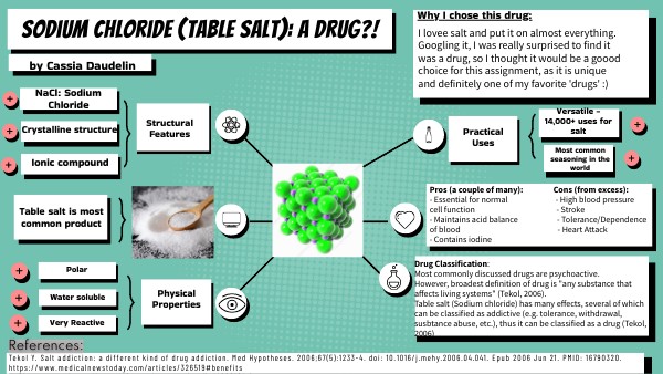 I lovee salt and put it on almost everything. Googling it, I was really surprised to find it was a drug, so I thought it would be a goood choice for this assignment, as it is unique and definitely one of my favorite 'drugs' :)
