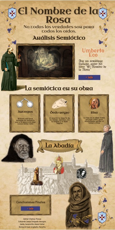 En una etapa de la historia, podemos observar una confrontación entre los monjes franciscanos y los sacerdotes del vaticano. Los frailes reclaman al vaticano que Jesús no tenía posesiones y, por tanto, la iglesia tampoco debería. Los sacerdotes del vaticano reclaman que aunque Jesús no tuvo posesiones, porque entonces la iglesia católica debería ser pobre. En semiótica podemos apreciar que las túnicas son el icono, para así interpretar los diferentes rangos e incluso creencias dentro de la iglesia.
