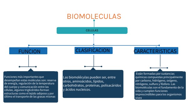 Las biomoléculas pueden ser, entre otros, aminoácidos, lípidos, carbohidratos, proteínas, polisacáridos y ácidos nucleicos.