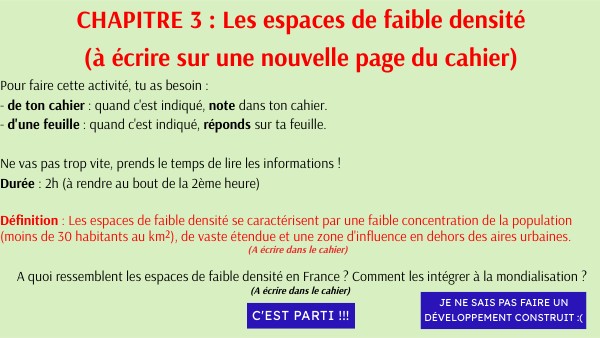 CHAPITRE 3 : Les espaces de faible densité(à écrire sur une nouvelle page du cahier)