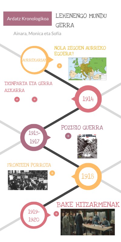 1914an mundu guztiak espero zuena gertatu zen, lehen mundu gerra. Hau magnizidiotzat jo zen, Frantz Ferdinand, Austriako hurrengo Hungaria artxidukea. Hau Bosnian gertatu zen, garai hartan Austria Hungaria lurraldean. Hiltzailea esku beltzeko kide bat da, Serbiako talde terrorista bat. Hau ikustean, Austria Hungariak ultimatum bat bidaltzea erabaki zuen, gerraren lararia zerrenda batean esaten zuen guztia egitea onartzen ez bazuten, eta hala izan zen.