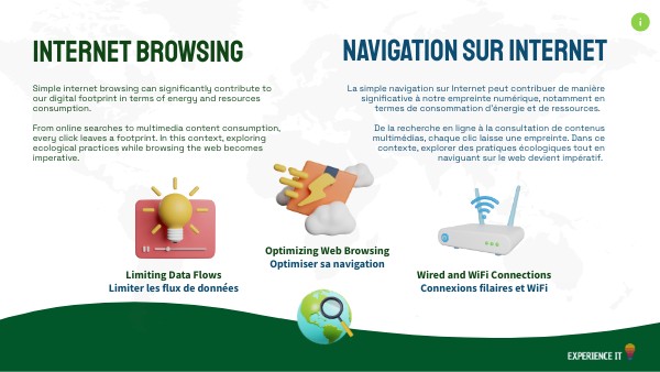 Simple internet browsing can significantly contribute to our digital footprint in terms of energy and resources consumption. From online searches to multimedia content consumption, every click leaves a footprint. In this context, exploring ecological practices while browsing the web becomes imperative.