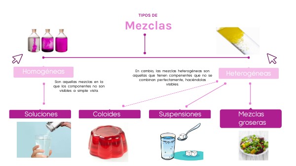 En cambio, las mezclas heterogéneas son aquellas que tienen compenentes que no se combinan perfectamente, haciéndolas visibles.