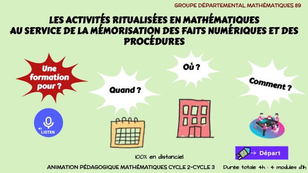- Découvrir le rituel - Comprendre les enjeux didactiques et pédagogiques - S'approprier les ressources en lien