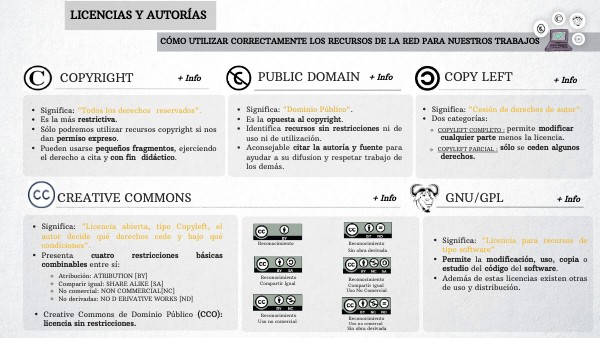 Descripción de los distintos tipos licencias existen para que el alumnado las conozca y sepa cómo usar los recursos apropiadamente en sus trabajos