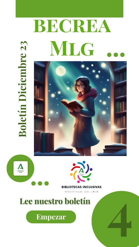 Podéis seguir el calendariodeadviento en todas las redes sociales y canales de difusión de BECREA Málaga: BLOG TWITTER INSTAGRAM FACEBOOK PINTEREST YOUTUBE Y es que la inclusión también beneficia a todos los estudiantes. Interactuar con compañeros/as que tienen diferentes habilidades y perspectivas, fomenta el desarrollo de habilidades sociales, la tolerancia y la colaboración. Los estudiantes aprenden a valorar las fortalezas de cada individuo y a trabajar juntos y juntas para alcanzar metas comunes. En pocas palabras: les prepara para vivir en una sociedad diversa y globalizada. Gracias a todas las bibliotecas escolares por su excelente trabajo diario. Felices Lecturas!!
