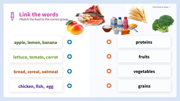 YMatch the food to the correct group.