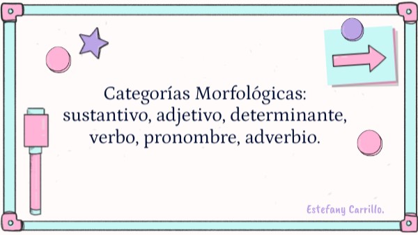 Categorías Morfológicas: sustantivo, adjetivo, determinante, verbo, pronombre, adverbio.