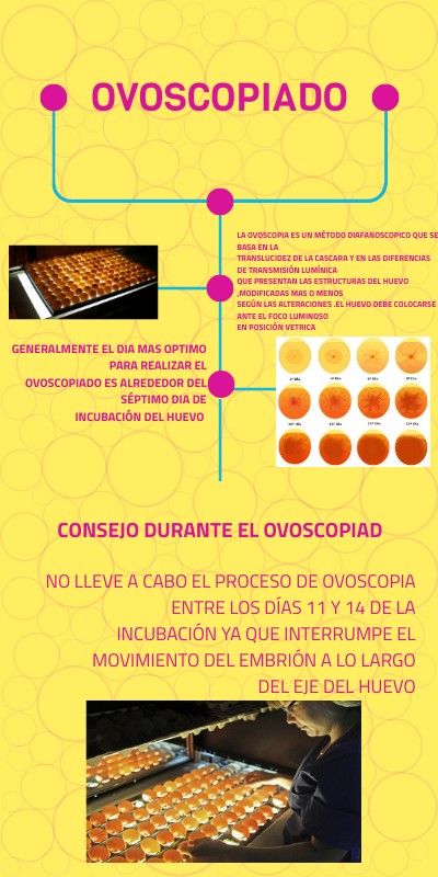 Generalmente el dia mas optimo para realizar el ovoscopiado es alrededor del séptimo dia de incubación del huevo