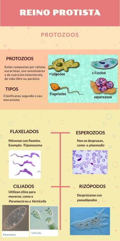 Están compostas por células eucariotas, son unicelulares y de nutrición heterótrofa, de vida libre ou parásito